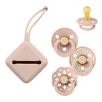 Denne bundle består af 3 stk. BIBS sutter i str. 2. Alle sutterne har et rundt suttehoved i naturgummi. Ligeledes medfølger en sutteboks med plads til de tre sutter.