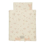 Det søde sæt dukkesengetøj i 100% økologisk bomuld inkluderer både en blød dyne og pude. Med dukkesengetøjet får de små rig mulighed for at putte deres favorit dukker, bams...