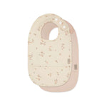 Sæt med to pæne og praktiske hagesmække, der nemt kan tørres af og er designet med en lomme foran til at fange mad på afveje. Hagesmækkene er fremstillet i genanvendt polyester. Et hverdags-must-have til de mange potentielt plettende måltider. Kommer i et sæt med en printet og en ensfarvet hagesmæk i matchende farvetoner. Hagesmæk i blomstret print.