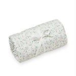 Det blødeste babytæppe designet med fin quiltning og smukt print. Tæppet har et let fyld, hvilket gør det ekstra behageligt at ligge på og hyggeligt at putte i – som en varm omfavnelse. Den perfekte gave til baby shower og nyfødte. Blomsterprintet tæppe i creme hvide og grønne farver.