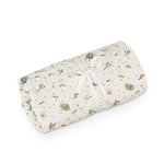 Det blødeste babytæppe designet med fin quiltning og smukt print. Tæppet har et let fyld, hvilket gør det ekstra behageligt at ligge på og hyggeligt at putte i – som en varm omfavnelse. Den perfekte gave til baby shower og nyfødte. Babytæppe i grønne, brune og blå nuancer på en cremehvid baggrund.