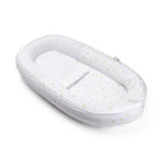 Doomoo Babybädd är en genomtänkt, bekväm och säker bädd som kan användas både dag och nattetid för att ge barnet en trygg tillvaro. Doomoo Babybädd är SGS säkerhetstestad. Babybädden gör att bebisen får en ombonad plats i övergången från mammas mage till samsovning för att skydda barnet, eller till sin egna säng. Doomoo Babybädd har en fast men mjuk botten av skum. Övre delen av madrassen och sidorna runt huvudet är av andningsbart material, kvalitets 3D mesh för att barnet inte ska bli för varmt, minska kvävningsrisken och ge bra ventilation runt barnets huvud. Doomoo Babybädd är SGS säkerhetstestad. Den har ett smart, löstagbart och reglerbart magband. Bandet är behagligt för barnet och håller det fast på rygg så det inte snurrar runt och kan fastna med ansiktet mellan botten och sida. Babybädden går lätt att reglera i storlek, från prematur. Nederdelen kan öppnas helt så bädden även kan användas som skötbädd till ett äldre barn. Bädden har inte några snören eller andra små delar som kan vara farligt för barnet. Doomoo Babybädd passar perfekt att ta med sig på resan eller i hemmet eftersom det gör att bebisen känner sig trygg och säker i bädden. Fakta Doomoo Babybädd – Ekologisk, Ökotex-certifierad bomull – Andningsbart 3D-material – Reglerbart och avtagbart magband – Växer med barnet Material; Överdrag: 75% ekologisk bomull, 5% elastan och 20 % polyester Inre överdrag: 100% polyester Madrass: Polyuretanskum Fyllning: Polyester Tvätt: 30 grader i maskin, får ej torktumlas