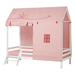 Tygtak till hussäng från PRINCESS universumet från Hoppekids. Med det smarta textiltaket till hussängarna från Hoppekids blir hussängen till en mysig grotta och lugn bas i barnrummet. Tygtaket sätts lätt fast på sängen med kardborrband och kan lätt tas av igen om det ska tvättas. Framsidan är delad i två, så man kan öppna helt eller delvist på framsidan. Taket är öppet i ändarna. Med ett tak till hussängen blir sängen till ett extra utrymme i barnrummet där det finns plats för inlärning, avkoppling och lek. Med ett tygtak till hussängen är sängen inte längre bara en säng. Kanske blir sängen istället till en tidsmaskin, en stuga i en förtrollad skog eller kanske ett vackert slott där prinsar och prinsessor bor.