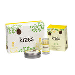 Vi har samlet KRAES babybad – havre & kokos, KRAES glade kinder og KRAES baby balm i en lækker gaveæske – perfekt til fødselsdags- eller barselsgaven. Denne variant anbefales til baby/barn med normal/tør/kløende hud. KRAES babybad – havre & kokos: KRAES babybad er udviklet med fokus på at skabe et naturligt og sæbefrit plejebad til småbørns sensitive hud. Vores basisingrediens kolloid havre fremmer en normal pH-værdi og opretholder en beskyttende barriere på huden, mens kokosmælk har rensende og fugtgivende egenskaber. KRAES glade kinder: En naturlig og 100% naturlig plejestick til daglig forebyggelse af hudirritation forårsaget af vintervejr/frost, savl og sol. Den lindrer tørhed i ansigtet, sprukne læber, hudafskrabninger, solskoldning og insektbid og er desuden rig på vitaminer, naturlige antioxidanter og essentielle fedtsyrer, der beskytter, fugter og lindrer den sensitive hud. KRAES glade kinder indeholder udelukkende naturlige ingredienser, hvorfor du også kan bruge plejesticken til at lindre sarte brystvorter uden at bekymre dig om, hvorvidt dit barn bliver udsat for unødvendig, syntetisk kemi. Den er praktisk at have med i tasken til nem og hurtig beskyttelse i vuggestuen/børnehaven og på ferien. Indeholder 30 ml KRAES baby balm: KRAES baby balm er en blød og nærende balm udviklet med afsæt i vores helende natur – den er både beskyttende, lindrende og fugtgivende. I udviklingen af KRAES baby balm har vi haft fokus på det enkle og rene, hvorfor vores ingrediensliste kun består af syv nøje udvalgte råvarer: abrikoskerneolie, kokosolie, sheasmør, bivoks, havreolie og castorolie. Indeholder en aktiv ingrediens, kolloid havre, som er kendt for at virke kløestillende, reducere rødme og inflammationer. Balmen anvendes til daglig lindring af tør hud, kløe, arp, bleudslæt, udslæt, insektbid, solskoldning, småsår, ømme brystvorter m.m. Indeholder 100 ml.