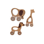 Söta djur i trä att hålla fast i och köra runt med på golvet, bordet och andra ytor. Välj mellan 3 olika djur. Mått: 15,3 x 7 x 4,5 cm. Ålder: 12m+.
