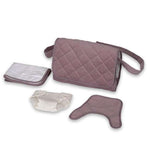 Väskan innehåller också en blöja, haklapp och skötväv.