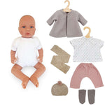 Leo / Leonora kommer med en vit, hålmönstrad bodystocking och i detta paket har vi noga valt ut några av de populäraste klädesplaggen tillsammans med dockan. På så sätt är du "redo att gå" så fort dockan landar. Garderoben kan givetvis utökas med tiden, med fler av de vackra dockkläderna och accessoarerna från Memories by Asi eller Asi.