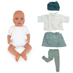 Leo / Leonora kommer med en vit, hålmönstrad bodystocking och i detta paket har vi noga valt ut några av de populäraste klädesplaggen tillsammans med dockan. På så sätt är du "redo att gå" så fort dockan landar. Garderoben kan givetvis utökas med tiden, med fler av de vackra dockkläderna och accessoarerna från Memories by Asi eller Asi.